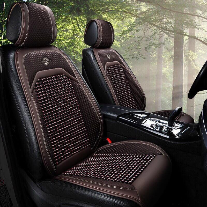 Bộ áo ghế ô tô lót liền hạt gỗ da cao cấp phủ 1 ghế trước, có đan hạt gỗ chống nóng, massage lưng