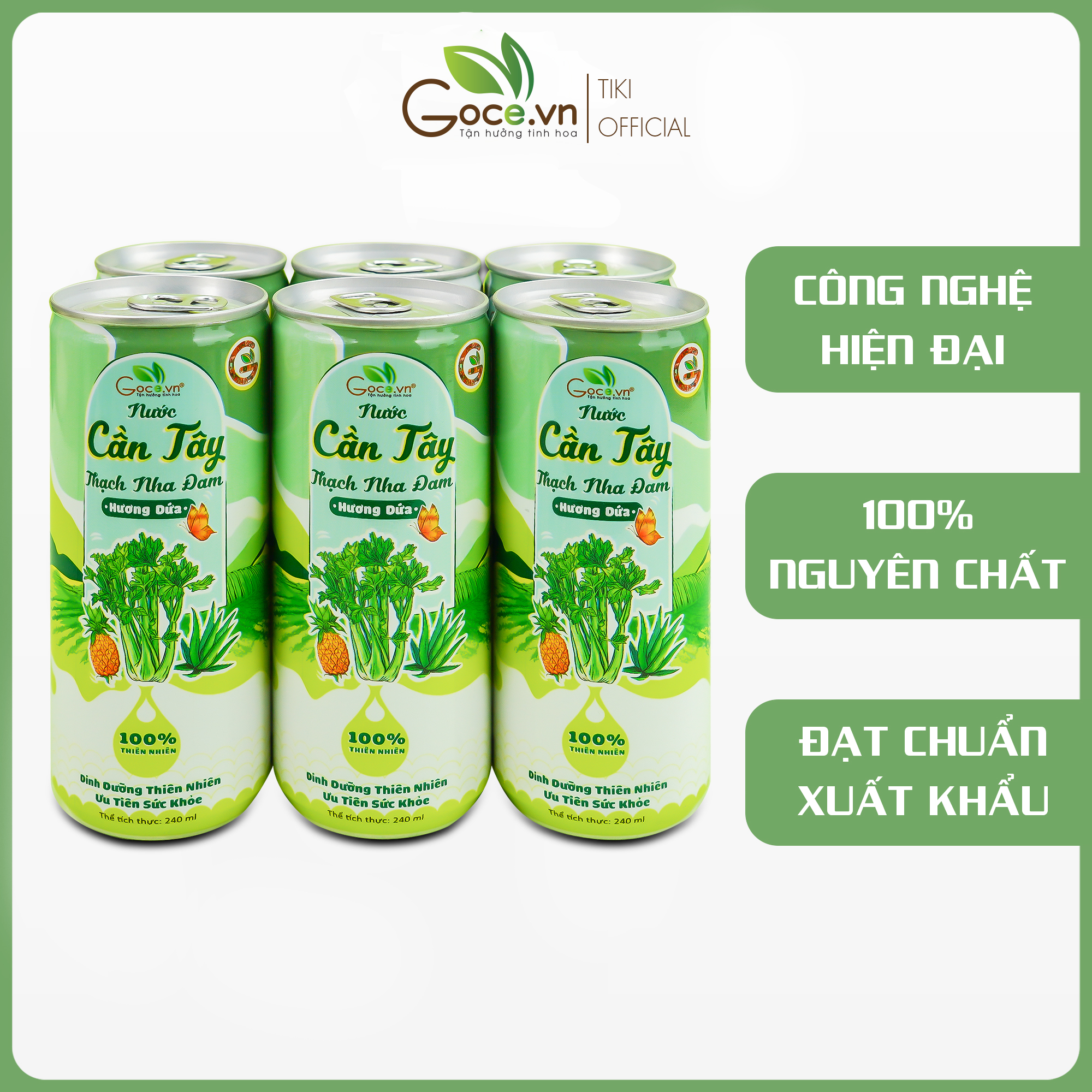 ✨1 Lốc (6 Lon) - Nước cần tây thạch nha đam hương dứa Goce - 240ml