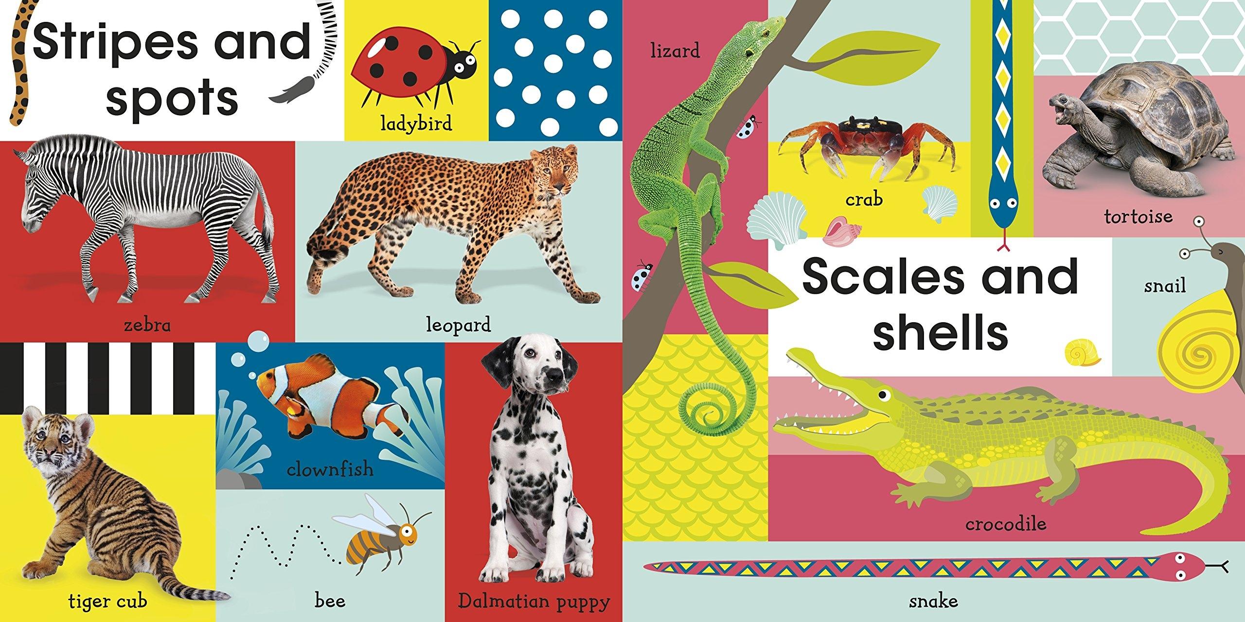 The ideal first animal picture book for babies and toddlers. Build little ones' vocabulary with 100 important animals, all with bold photographs and beautiful illustrations. Bright and colourful themed pages cover pets, farm animals, big beasts, cute baby animals, and animal colours and patterns. 100 First Animals is a large board book with a padded cover and makes an ideal first gift for babies. Crystal-clear photos show the wonder of the animal world, while engaging illustrations tell simple stories that stimulate talking, from a swan with her cygnets to a fish being chased by a smiley shark! Word labels encourage pointing, naming, and picture-and-word association. Cleverly designed to inform and entertain, 100 First Animals makes learning an exciting adventure for your baby.