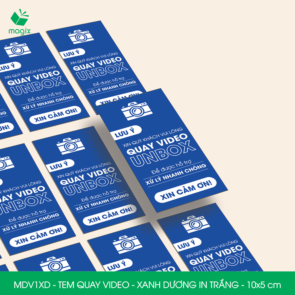 ✨100 Tem chú ý quay video trước khi mở hàng, decal dán hộp - 10x5 cm - Xanh dương in trắng - MDV1XD