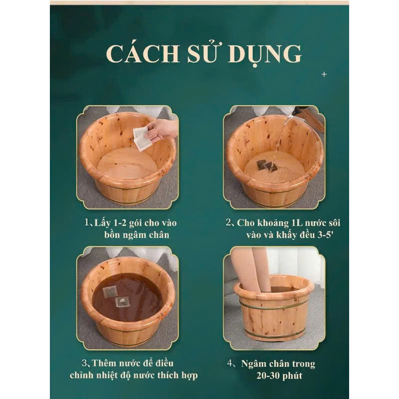 Cho gói thảo dược vào nước ấm rồi ngâm chân giúp thải độc, thư giãn đôi chân của bạn.