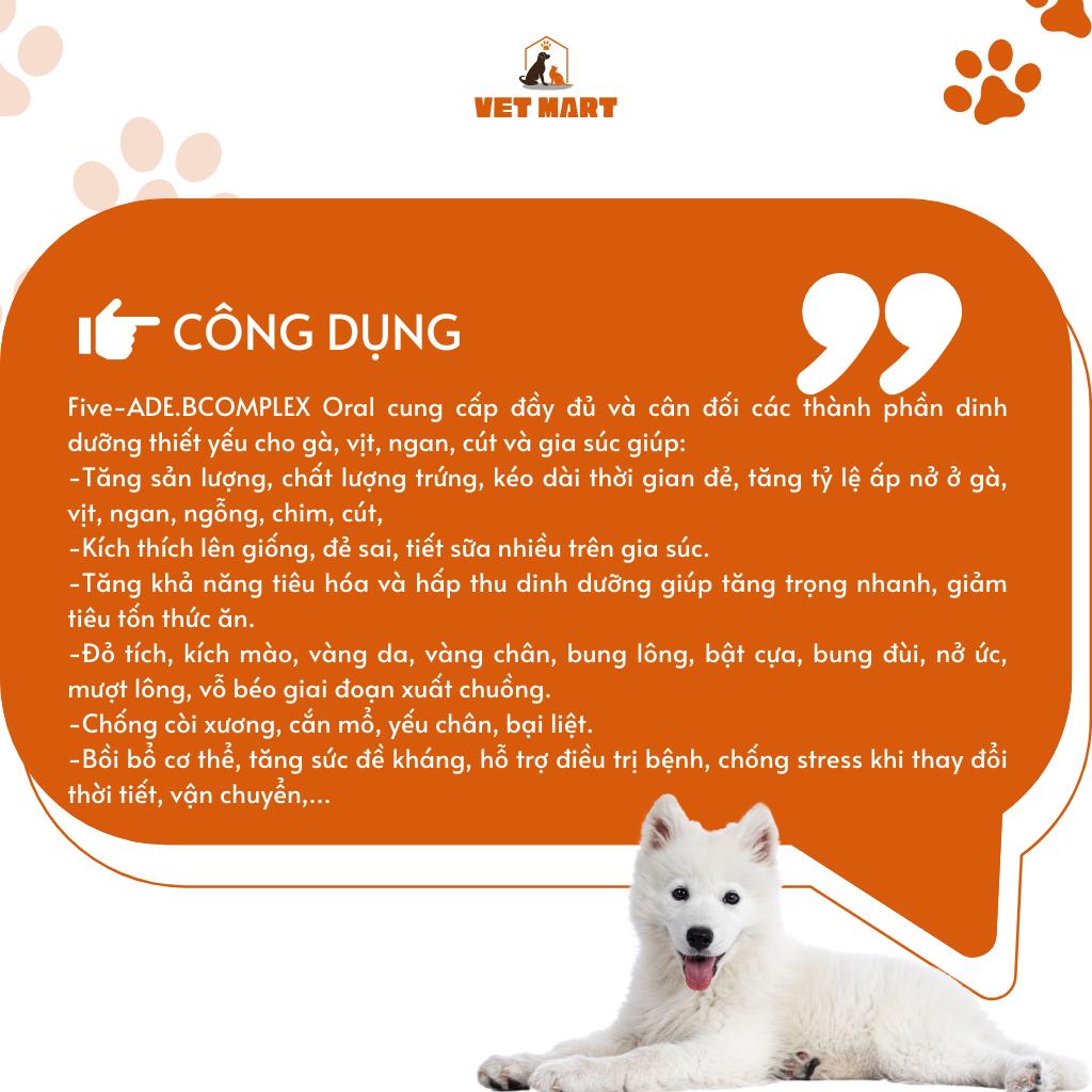 THÀNH PHẦN NGUYÊN LIỆU: Các Vitamin (A, D3, E, B1, B2, B6, B12, K3, C), Canxi Gluconate, D,L-Methionine, Choline chloride, L-Lysine, Biotin, Propylen glycol & nước cất.