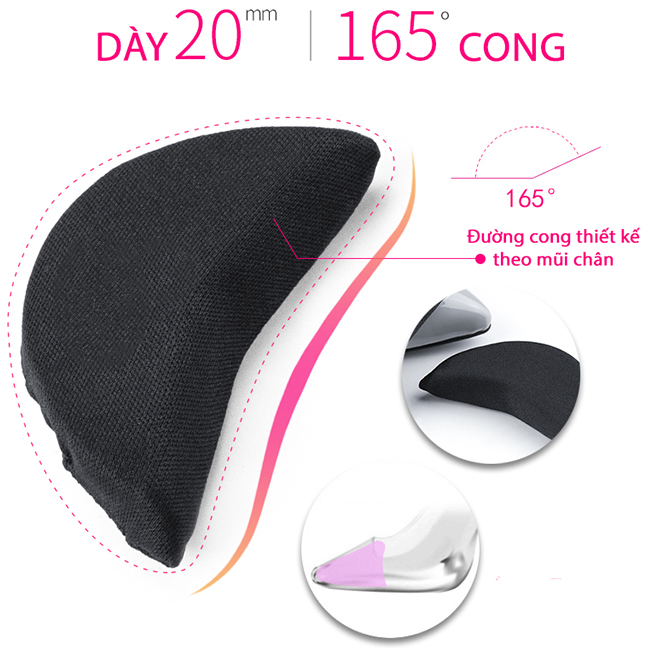 CÔNG DỤNG NỔI BẬT - Lót mũi giày làm từ mút mềm bọc vải cotton giúp bảo vệ mũi chân và các ngón chân. - Lót mũi giày lấp đầy phần mũi giày, giúp cho