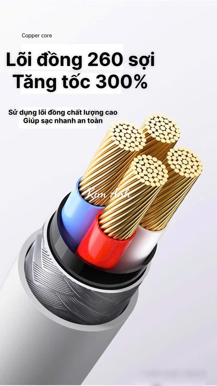 Lỗi đồng 260 sợi dầy chất lượng cao giúp tăng tốc độ sạc 300% so với cáp thông thường, chống nhiễu, truyền tải và sạc mượt mà đầy pin trong 15 phút ( chỉ 1 lần chơi game)