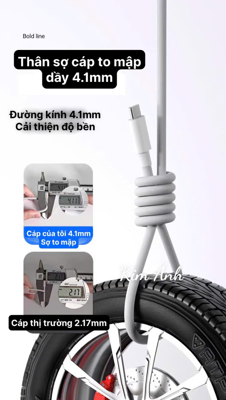 Thân sợi cáp to mập, đường kính 4.1mm, to hơn các loại cáp khác trên thị trường chỉ 2.17mm
