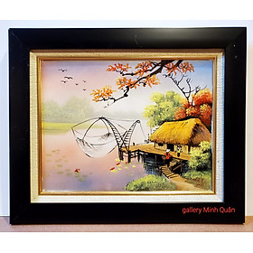 Tranh treo tường làng quê Việt Nam yên bình - Kích thước của tranh : Kích thước : 45x70cm - 50x80cm - 60x100cm - 70x120cm - Chất liệu : Tráng gương - Khách hàng muốn