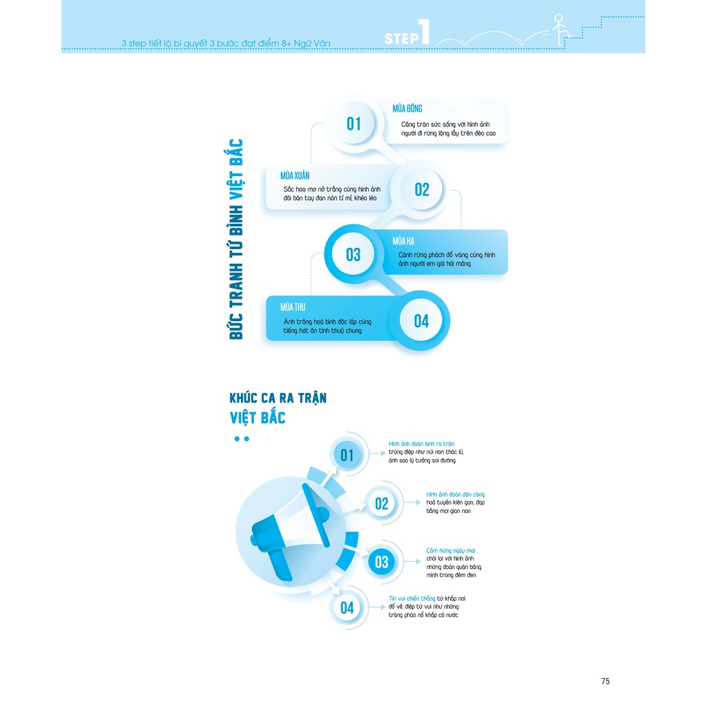 Chính vì thế, bộ sách 3 Step – Tiết lộ bí quyết 3 bước đạt điểm 8+ được ra đời với mục đích giúp các em định hướng lộ trình và hệ thống kiến thức một cách bài bản, dễ học nhất – Với độ khó tăng dần, tương ứng với mức điểm thi mong mục tiêu tăng dần.