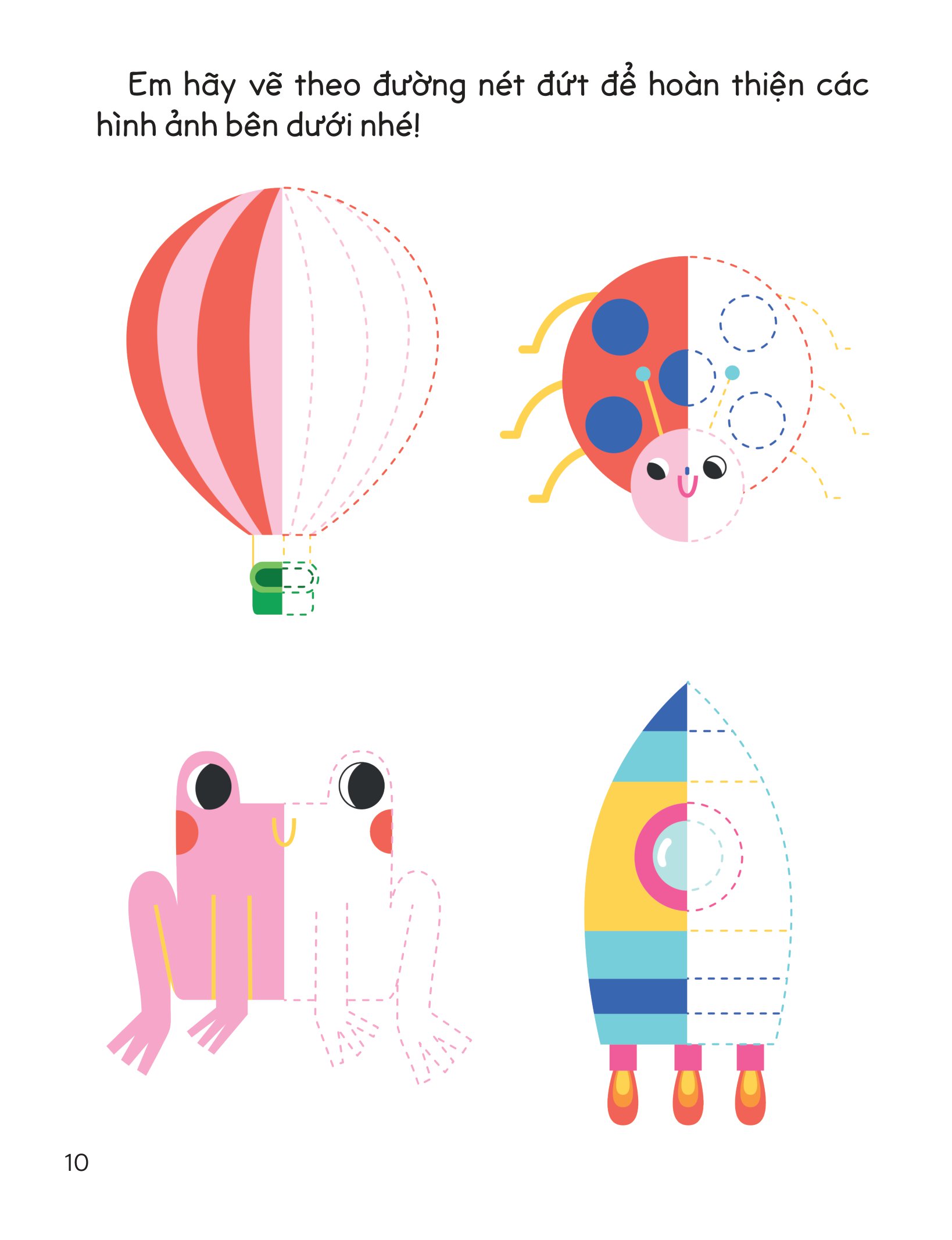 Đồng thời, các hoạt động trong sách cũng kích thích trí não của em, giúp em phát triển nhận thức thị giác, kỹ năng vận động tinh và sự phối hợp tay-mắt đấy.