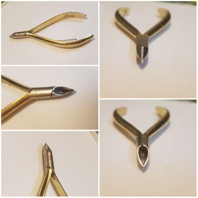 Thiết kế mạ vàng có 3 size lưỡi Lưỡi kềm sắc mỏng, tinh xảo, độ chính xác cao nên được cắt chính xác gọn gàng không làm tổn thương da khi cắt. Lưỡi kềm bén