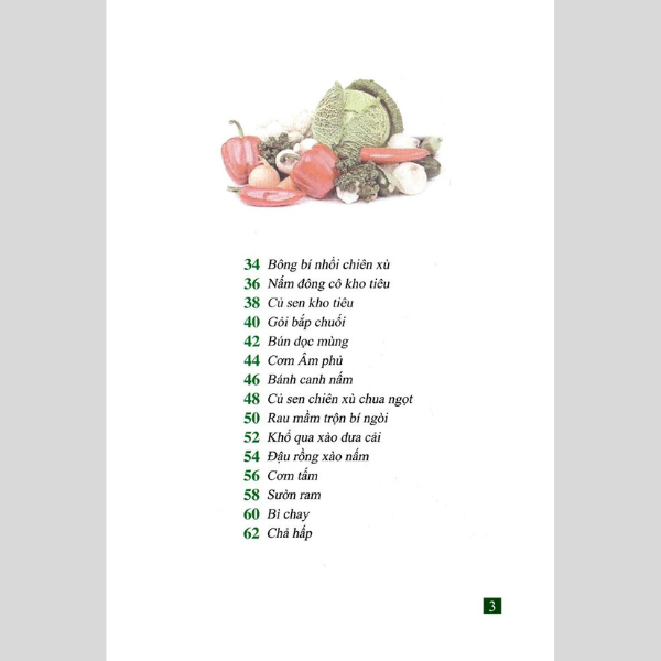 Cuốn sách giới thiệu các công thức nấu các món chay giúp các bà nội trợ có thêm nhiều sự lựa chọn hơn trong các bữa ăn hàng ngày cũng như trong các bữa tiệc họp mặt gia đình, bạn bè.