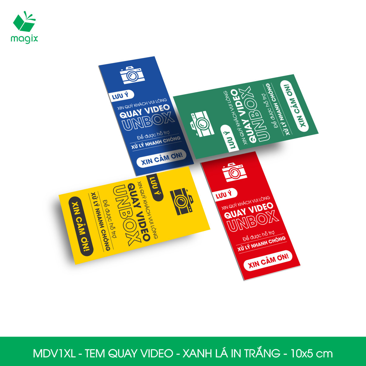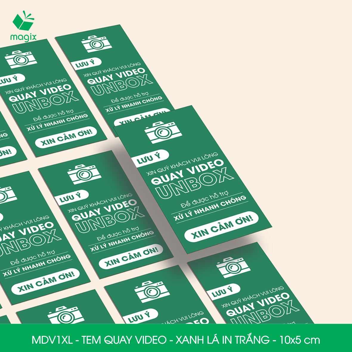 ✨500 Tem chú ý quay video trước khi mở hàng, decal dán hộp - 10x5 cm - Xanh lá in trắng - MDV1XL