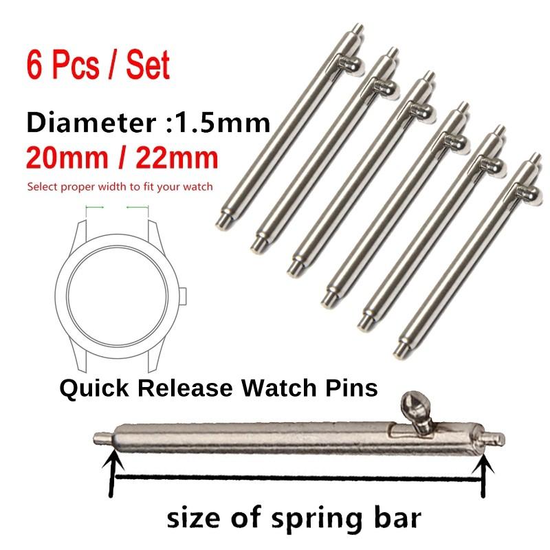 ✨6 thanh chốt thông minh dùng cho dây đồng hồ thông minh + Size ( kích cỡ ) chốt : 20mm / 22mm
