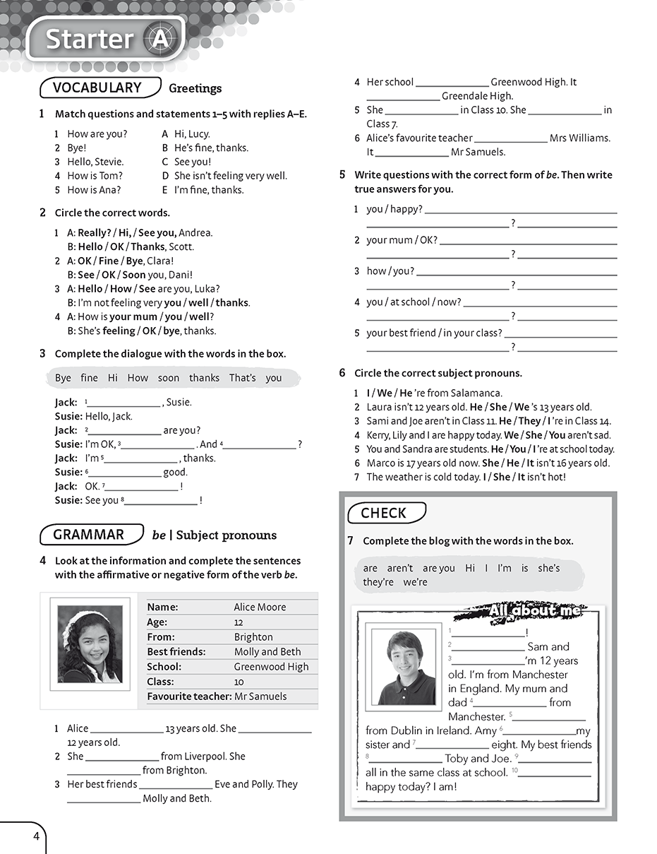 Share It! 4 Workbook The Workbook provides reinforcement of the Student Book lessons' content, and can be used in class or as homework.