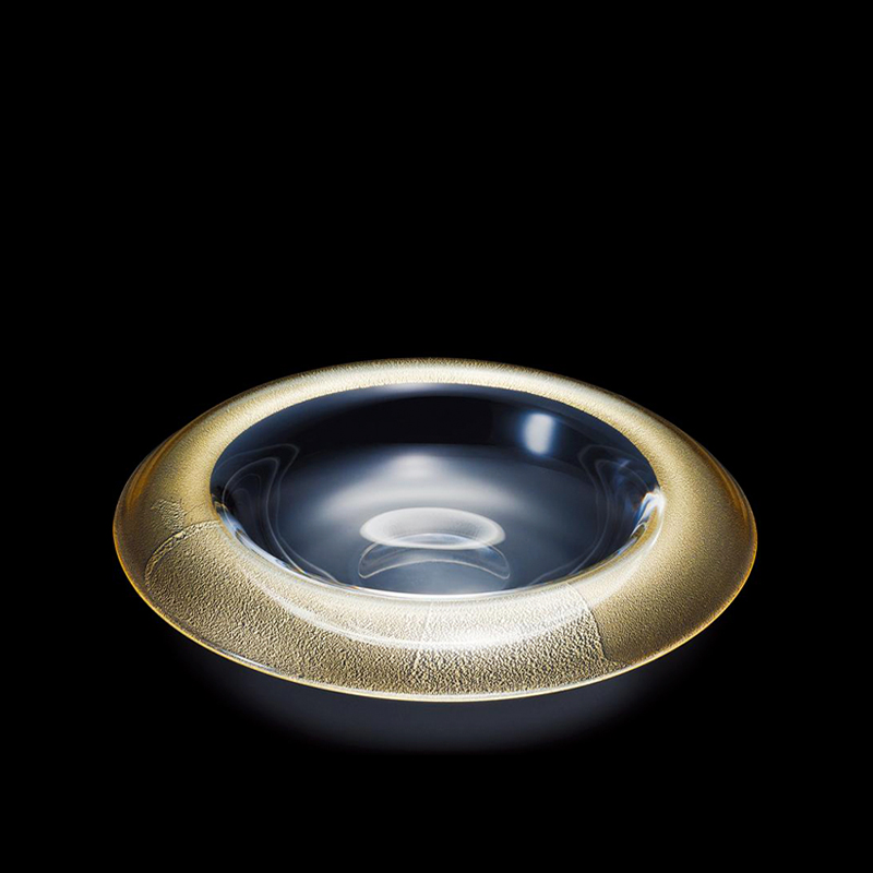 Tô thủy tinh kết cấu lòng sâu, phần viền rộng được hoàn thiện tỉ mỉ với điểm nhấn là những chấm vàng mỏng lấp lánh thu hút. Chất liệu thủy tinh thổi thủ công mỏng, nhẹ và cực kỳ trong suốt. Sản phẩm phác họa vẻ đẹp sang trọng của thủy tinh thủ công truyền thống khi đặt trên bàn ăn.