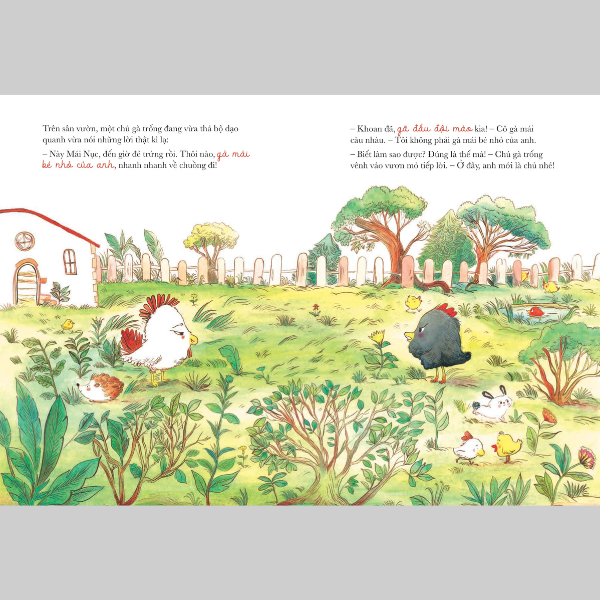 Ở chuồng gà, ngày nào chú gà trống cũng diễu qua diễu lại chế nhạo các cô gà mái và chỉ để lại cho chúng ít vụn thức ăn. Các cô gà mái đã chán ngấy cảnh này, chỉ biết thở dài và bịt tai lại.