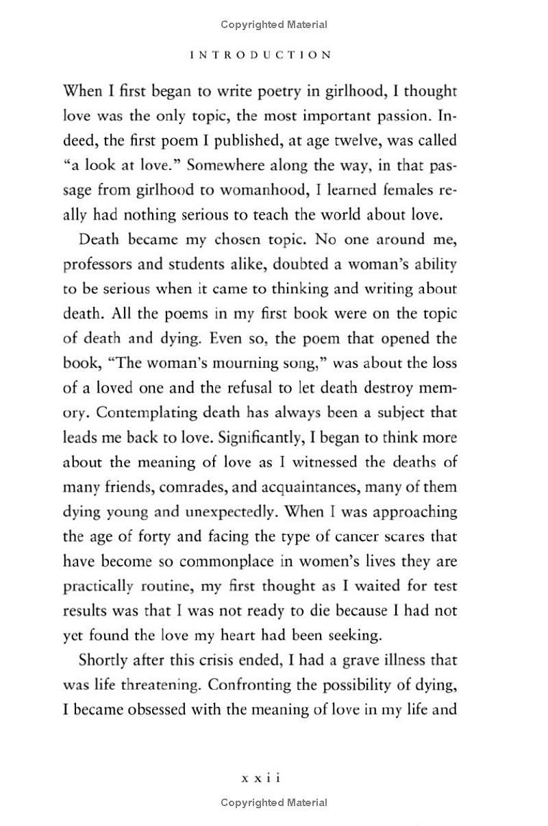 As bell hooks uses her incisive mind to explore the question “What is love?” her answers strike at both the mind and heart. Razing the cultural paradigm that the ideal love is infused with sex and desire, she provides a new path to love that is sacred, redemptive, and healing for individuals and for a nation. The Utne Reader declared bell hooks one of the “100 Visionaries Who Can Change Your Life.” All About Love is a powerful, timely affirmation of just how profoundly her revelations can change hearts and minds for the better.