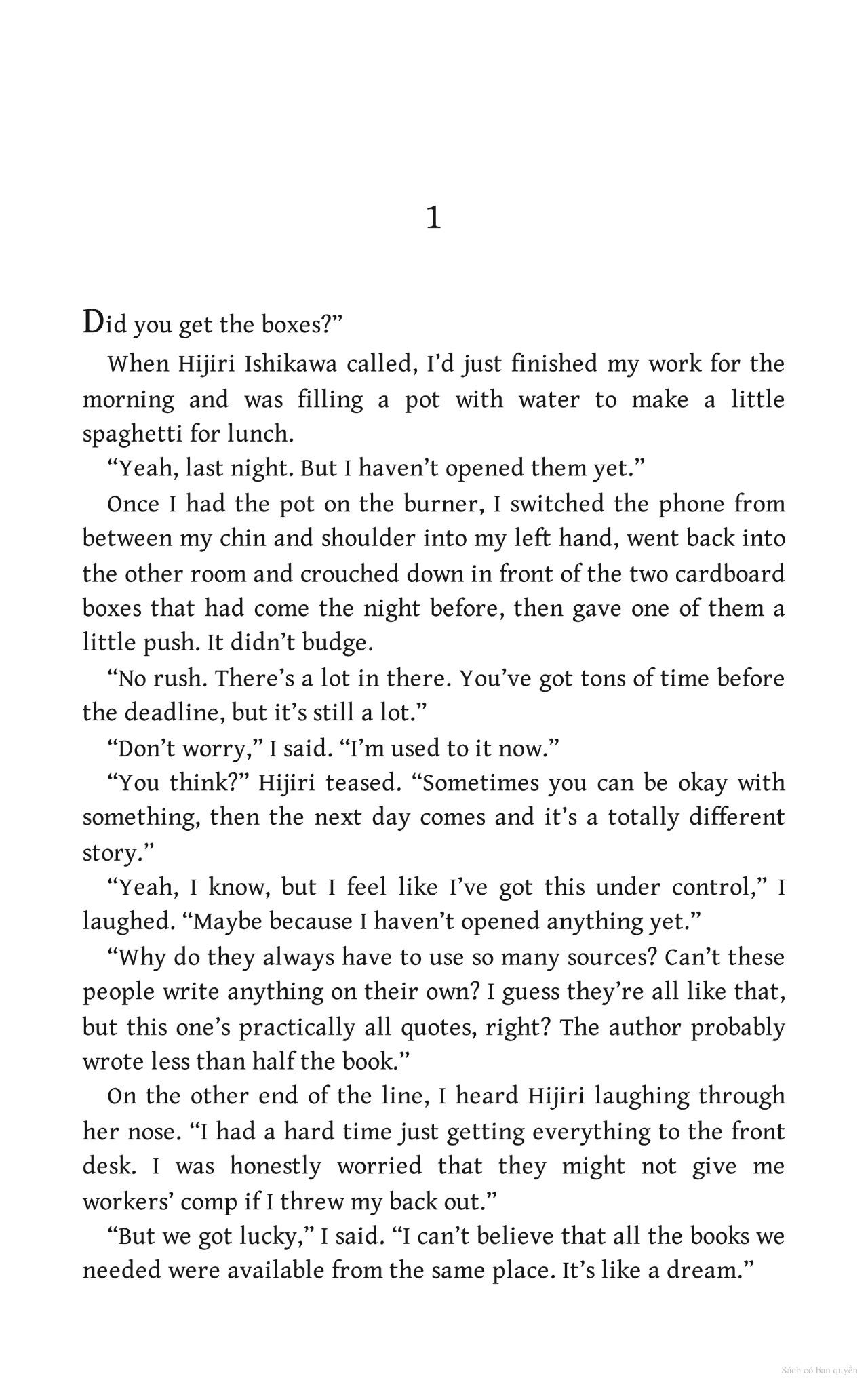 Tác giả: Sosuke Natsukawa Nhà xuất bản: Harper Via Năm xuất bản: 2023 Công ty phát hành: Harper Via Loại bìa: Bìa mềm Số trang: 198 Trang Ngôn ngữ: Tiếng Anh ISBN: 9780063095731 Kích Thước: 5.31