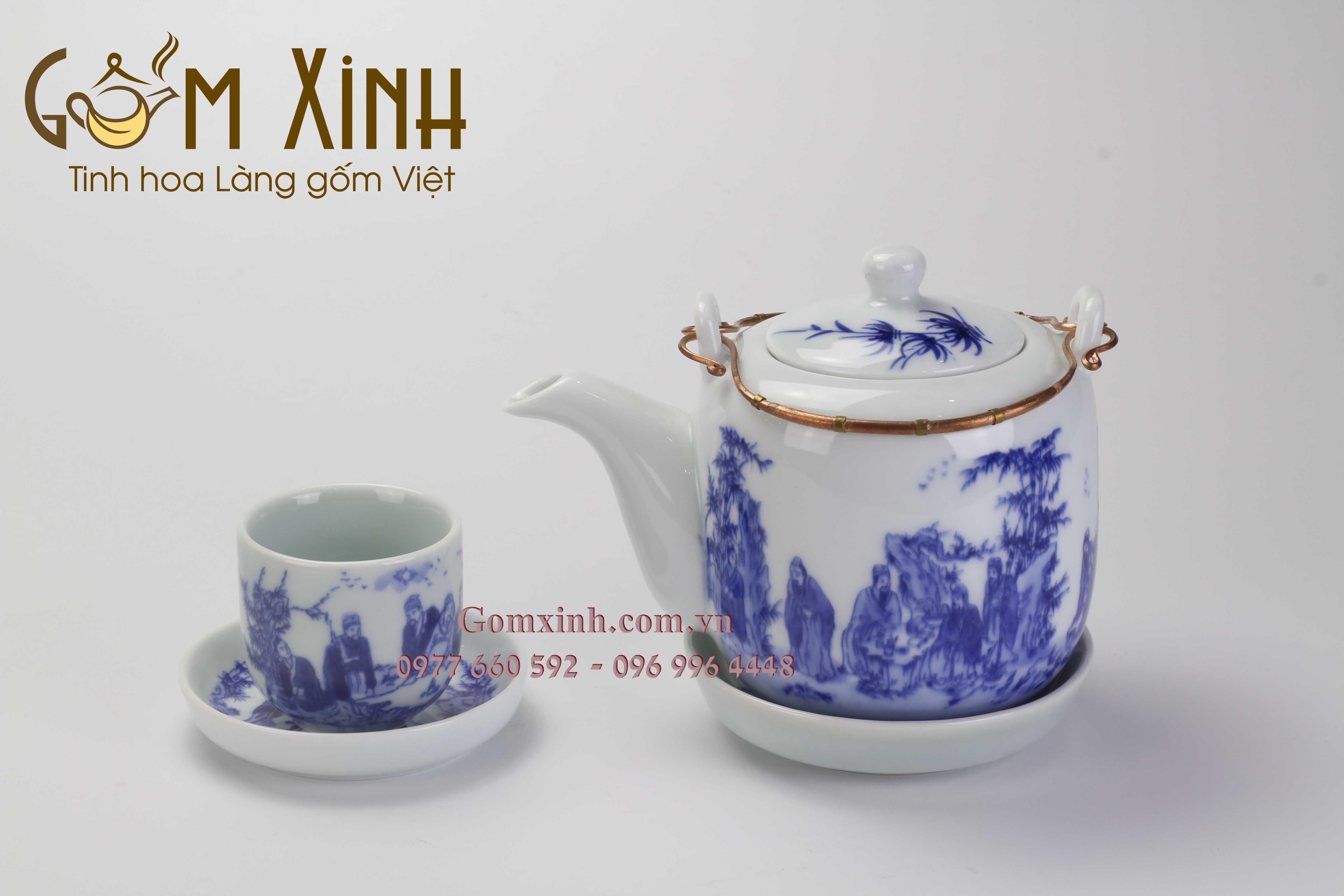 Bộ ấm tích 1,5 lít Trúc Lâm Thất Hiền men lam Bát Tràng. #amchenbattrang #truclamthathien