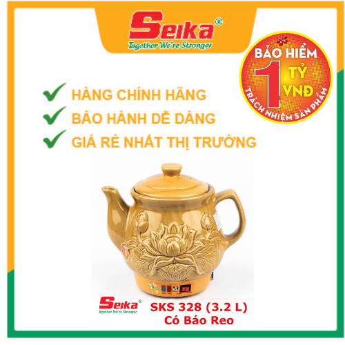 Dung tích 2.8L Ấm Sắc Thuốc Seika 2.8L - SKS280 (Gốm Sứ Bình Dương) được làm từ gốm sứ Bình Dương loại 2.8L có sức chịu nhiệt cao, bề mặt láng mịn dễ dàng vệ