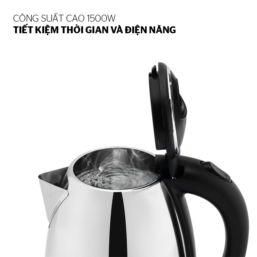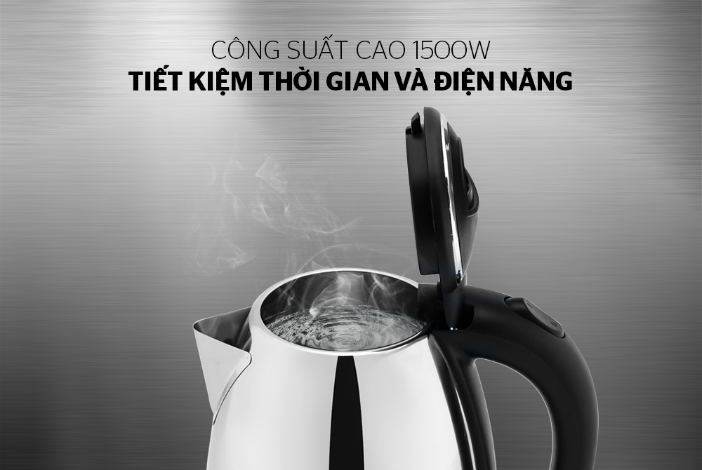 Công suất mạnh 1500W cho thời gian nấu nước nhanh chóng, giúp tiết kiệm thời gian và điện năng tối đa.