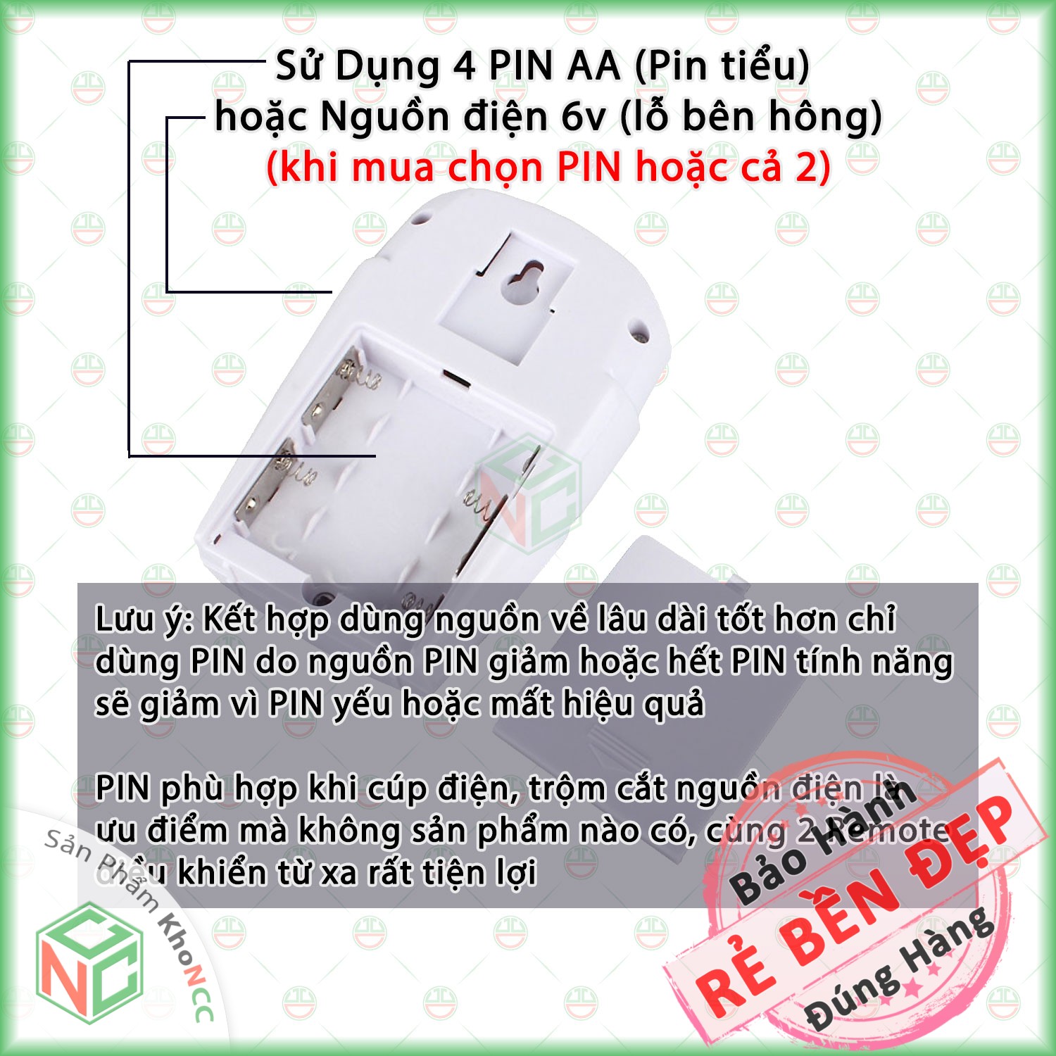 - Mặc định thiết bị có thể gắn PIN và dùng ngõ vào DC6V , tuy nhiên có trường hợp khách chỉ dùng PIN do gắn ở xa, không tiện đi dây.