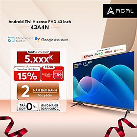 ✨Android Tivi LED Hisense 43 inch A4N Trợ Lý Ảo Google Voice Control, Bảo Hành 2 Năm - Hàng Chính Hãng
