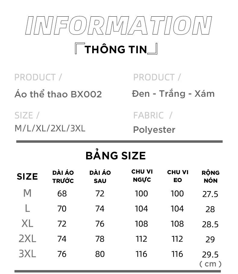 Áo thể thao BX002 thiết kế để sử dụng khi tập luyện thể thao như tập gym, chạy bộ, yoga, đấm bốc, và các hoạt động thể thao khác. Được làm bằng vật liệu thoáng