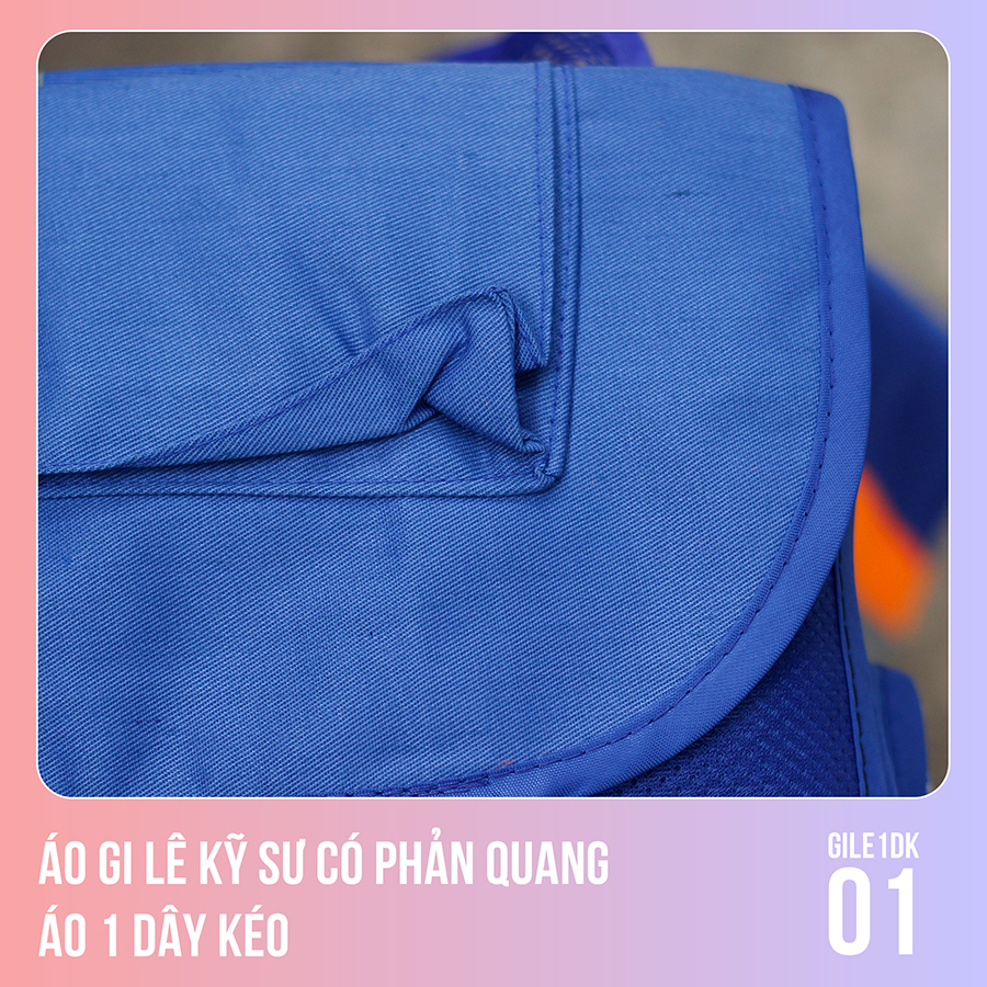 Sản phẩm: Áo Gi Lê Kỹ Sư Có Phản Quang - Áo 1 Dây Kéo - GILE1DK01 Kiểu dáng: Áo Gile túi hộp may dây phản quang trước ngực và đằng sau Chất liệu: Vải