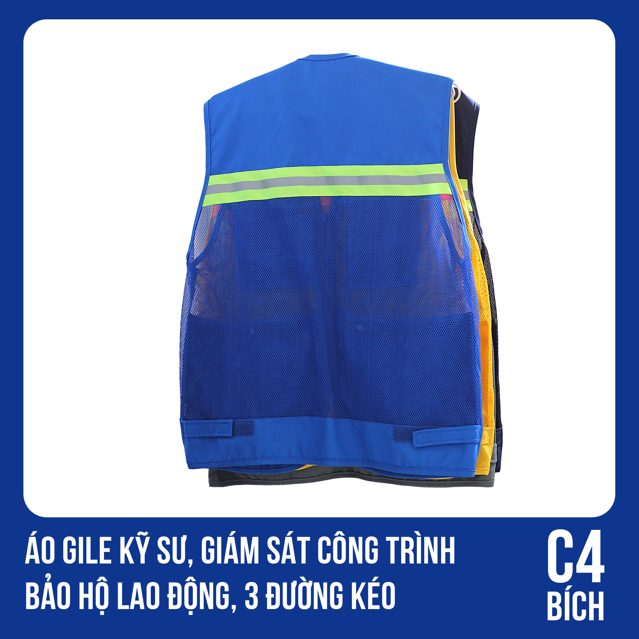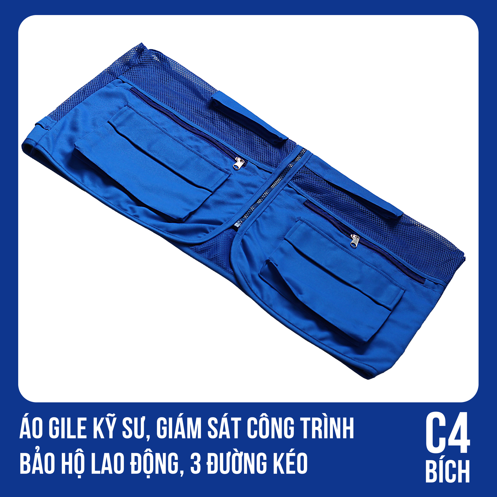 ✨Áo Gile Kỹ Sư, Giám Sát Công Trình, Bảo Hộ Lao Động, 3 Đường Kéo - Mã C4 (BÍCH)