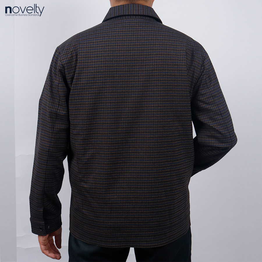 Áo Jacket nam 2 lớp cổ bẻ Novelty Casual caro lớn nâu đen NJKMCLMT3B2305312