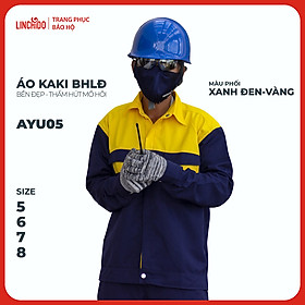 ✨Áo Kaki đồng phục công nhân thoáng mát bền đẹp thấm hút mồ hôi màu phối xanh đen vàng - Mã AYU05