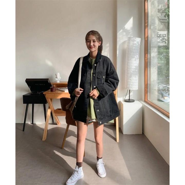 Áo khoác jean nữ chống nắng màu đen trơn, có túi trước, sản phẩm cực hót và cá tính. Thiết kế đơn giản nhưng không kém phần độc đáo, với chất liệu jean cao cấp