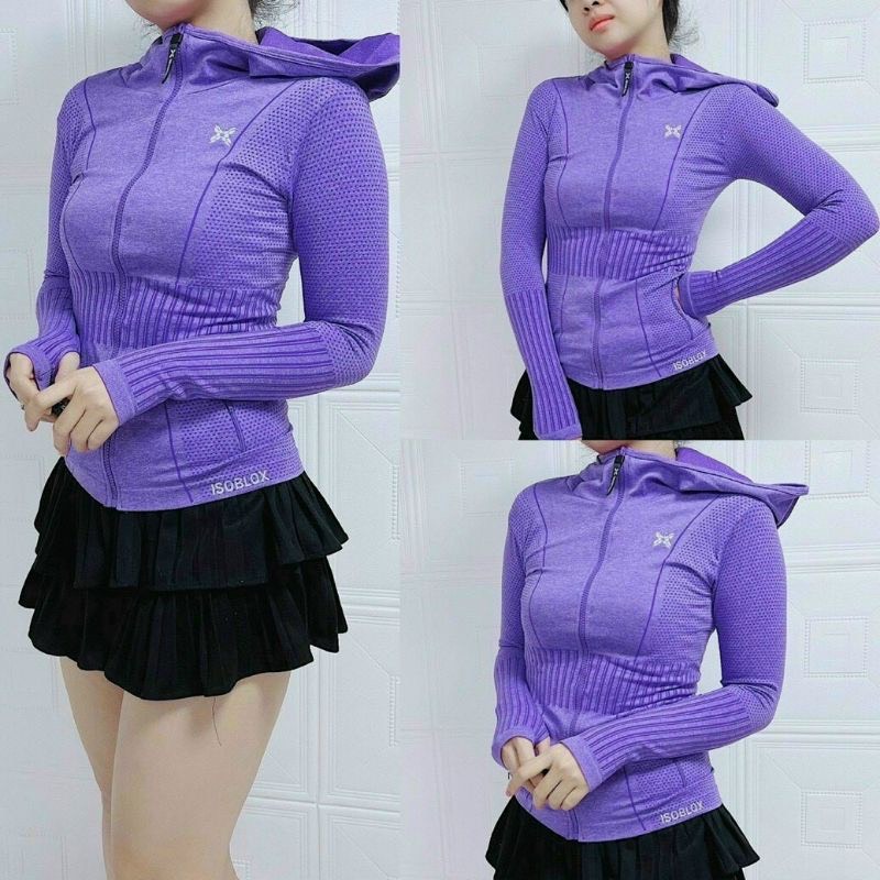 Mặt hàng: Áo khoác thể thao nữ cao cấp, áo khoác tập Gym, Yoga , đi nắng chống tia uv • Chất thun dệt kim, co giản tốt, thấm hút mồ hôi tốt và ôm