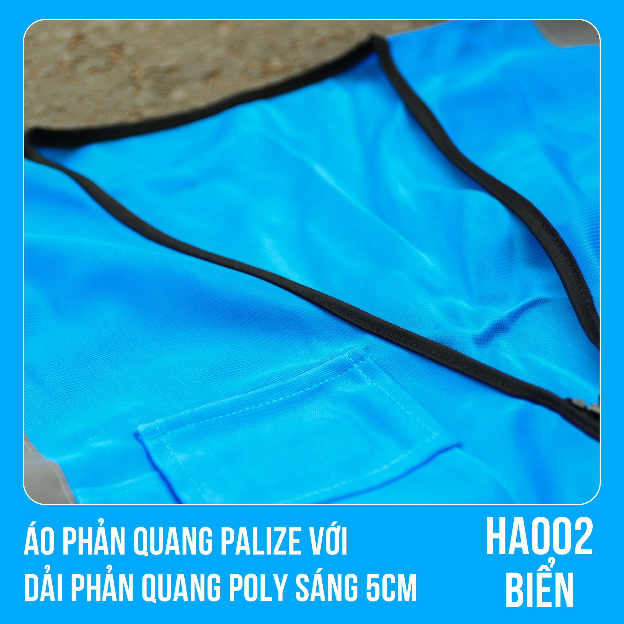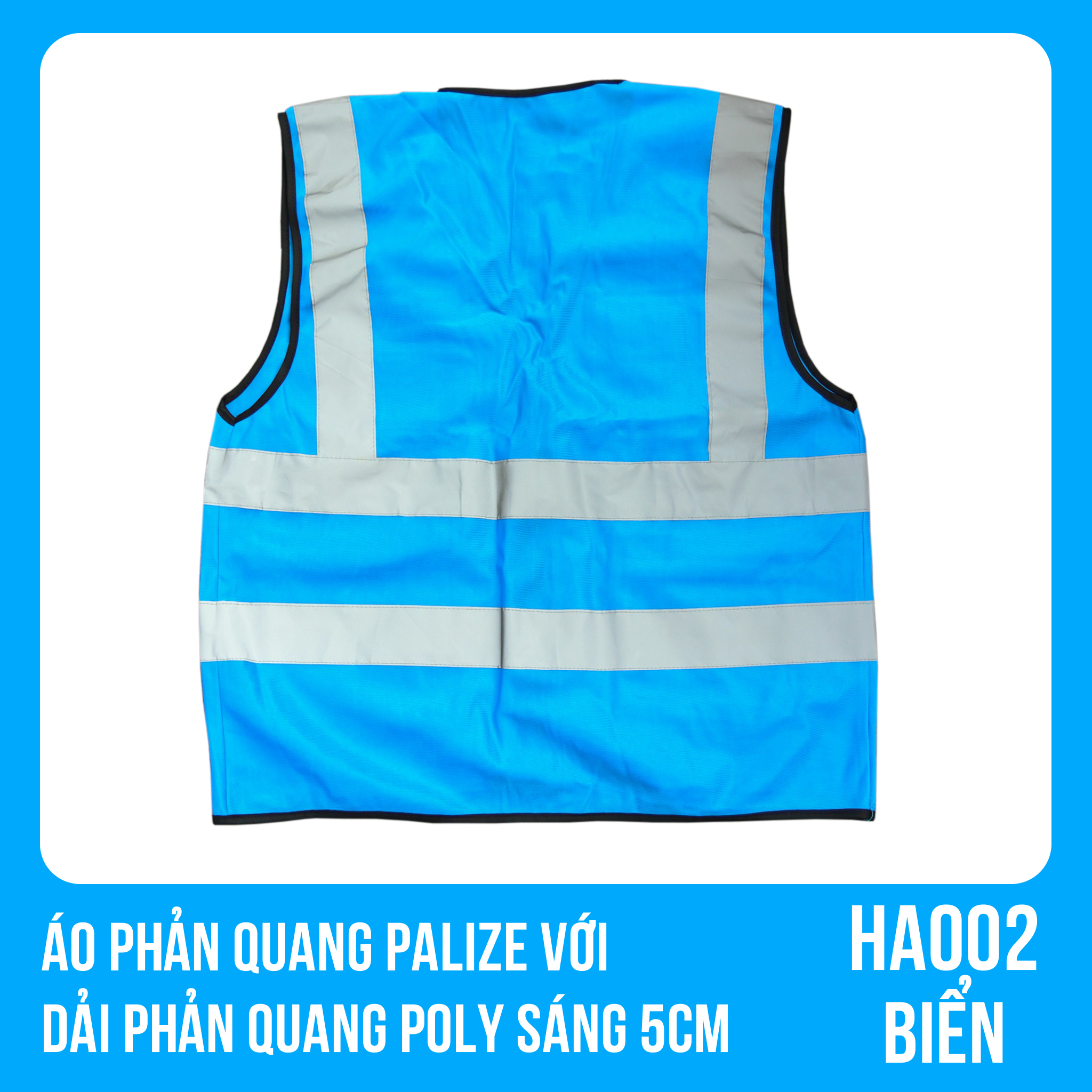 ✨Áo phản quang Palize với dải Phản quang Poly sáng 5cm màu BIỂN - Mã HA002