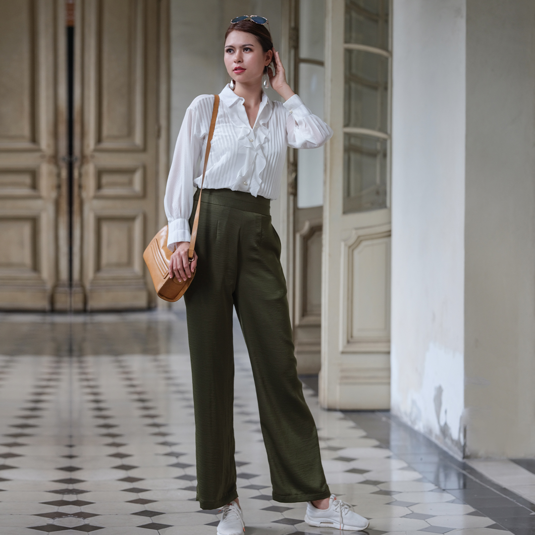 Nhưng không chỉ giới hạn trong khuôn khổ truyền thống cứng nhắc của áo sơ mi quần tây, bạn hoàn toàn có thể phối với quần ống rộng, giày sneakers mang đến hình ảnh người phụ nữ năng động sẵn sàng xông pha.