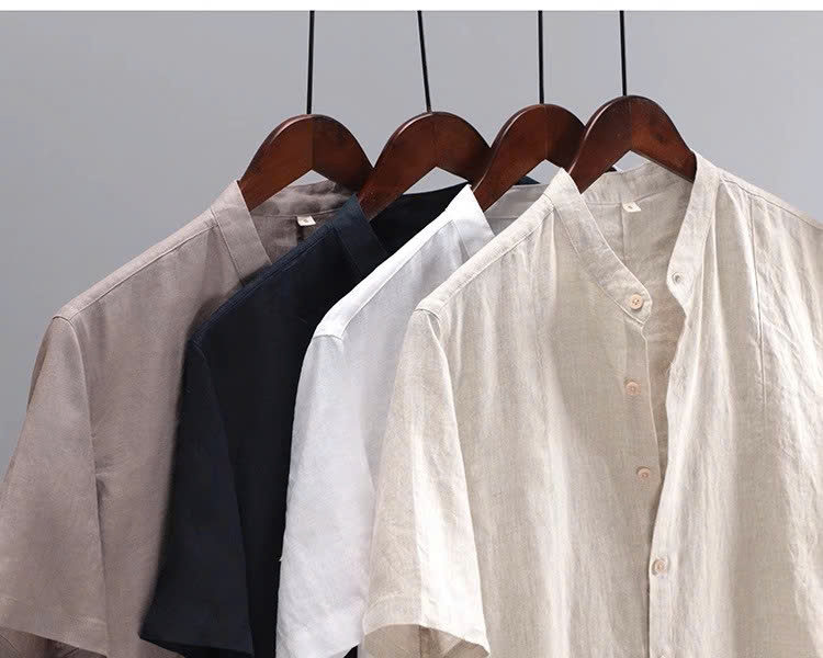 ✨áo sơ mi nam ngắn tay cổ trụ thiết kế trơn dễ phối đồ sang chảnh, thanh lịch