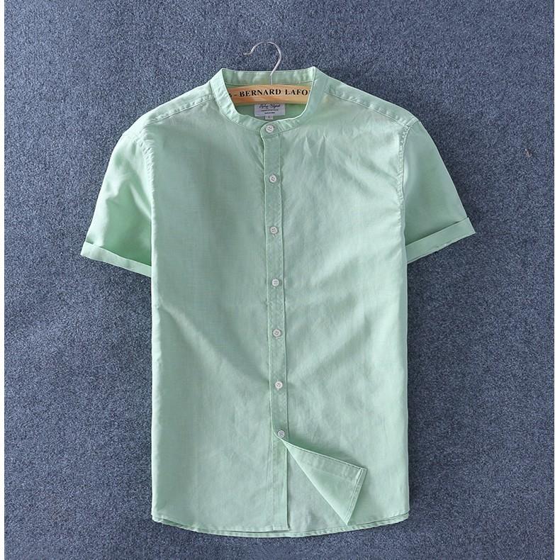 ÁO SƠ MI NAM NGẮN TAY CỔ TRỤ THỜI TRANG -Mẫu sơ mi nam ngắn tay cổ trụ vải xô thái cao cấp -Thiết kế kiểu cổ trụ mới mẻ và sang trọng -Size: M,