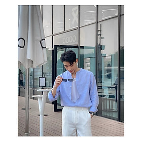 ✨Áo sơ mi nam phong cách Hàn Quốc dài tay thiết kế cổ trụ tinh tế, thanh lịch MS04