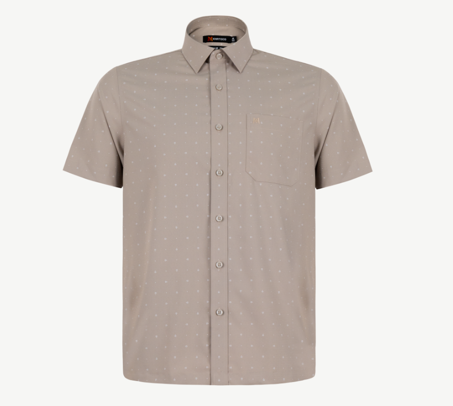 (V)Mô tả sản phẩm:ÁO SƠ MI NAM TAY NGẮN KHATOCO - TAILOR FIT  Kiểu dáng: Tailor Fit - Ôm nhẹ, tôn dáng, lịch sự  Màu sắc: Be sáng (họa tiết tam giác nhỏ trắng, tinh tế)  Size: L – XL – 2XL ️ Th...