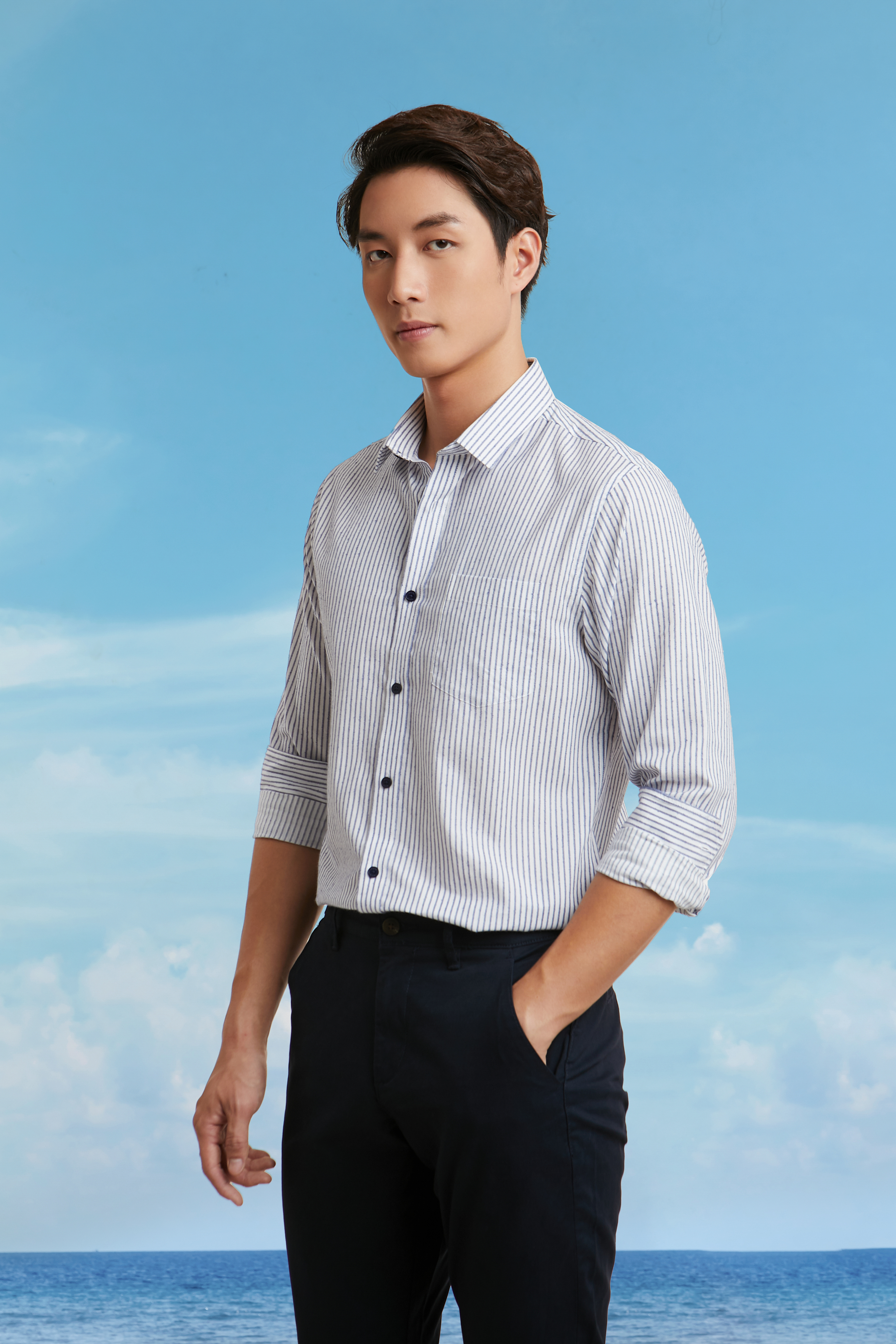Form Taylor, tay dài Form áo tiêu chuẩn với form áo rộng vừa phải, không ôm sát cơ thể, bó nhẹ ở vùng eo và tay áo. Độ rộng vùng ngực và nách cũng sẽ fit hơn với cơ thể. Không quá rộng như form áo cổ điển. Màu vải nhã nhặn và trung tính dễ dàng phối trang phục tạo sự lịch lãm, nam tính Nút ton-sur-ton khắc logo đẹp mắt phối trọn vẹn màu áo. Logo thêu sắc nét trên túi áo. Chất liệu: 49% bamboo- 49% Microfiber-2% Spandex Mềm mịn |Thấm hút |Kháng khuẩn |Chống tia UV |Độ bền cao |Co giãn |Chống nhăn Màu sắc: trắng sọc
