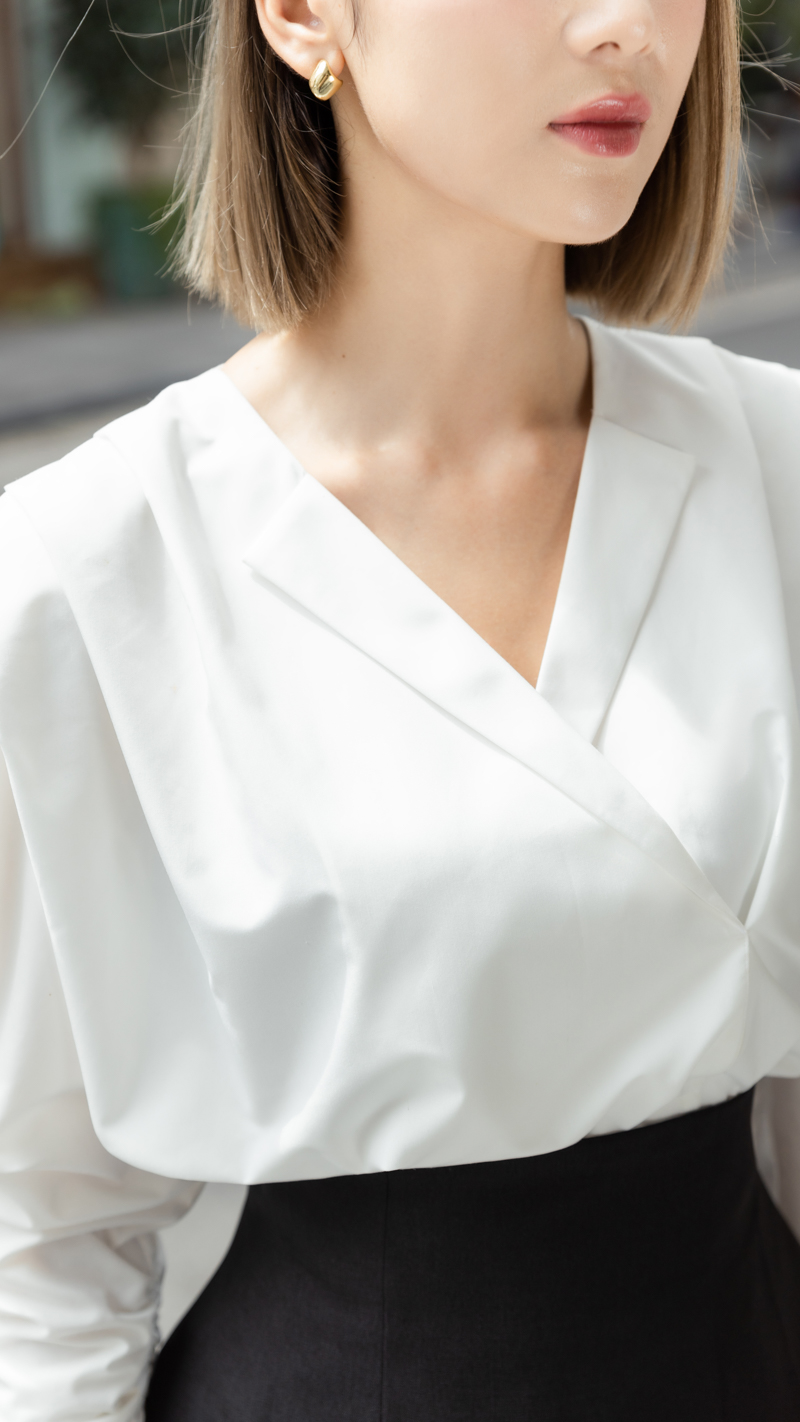 ✨ Áo sơ mi vai chờm có đệm Bianca thiết kế cao cấp WHITE CHIC