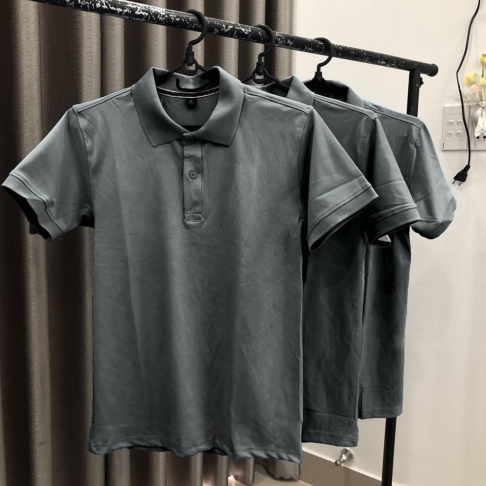✨Áo Thun Có Cổ Cá Sấu 4 Chiều thoitrang24h Màu Xám Đậm Lông Chuột Đồng Phục Nam Nữ