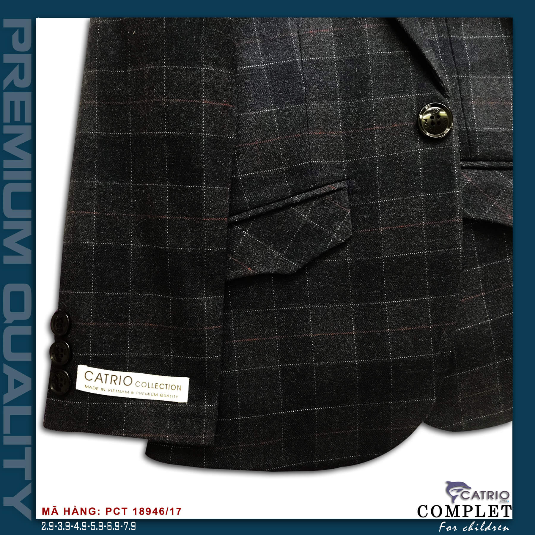 ✨ÁO VEST BÉ TRAI CATRIO PCT14946/17 là áo đờ mi, áo khoác vest trẻ em từ 8 tuổi(29kg) đến 12 tuổi(49kg) thuộc bộ sưu tập quần áo complet veston trẻ em cho mùa lễ hội tết tiệc cưới sự kiện sinh nhật, được làm bằng vải dạ cao cấp nhất, đẹp đến từng chi tiết