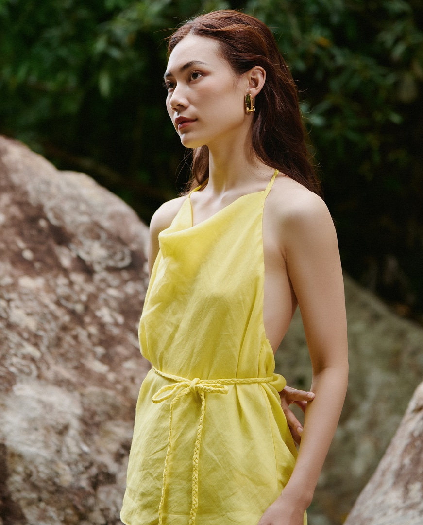 Kiểu dáng hở lưng gợi lên vẻ đẹp quyến rũ, bí ẩn. Yếm mang phong cách tự do, phóng khoáng, như nàng kim tước vàng anh gợi cảm.