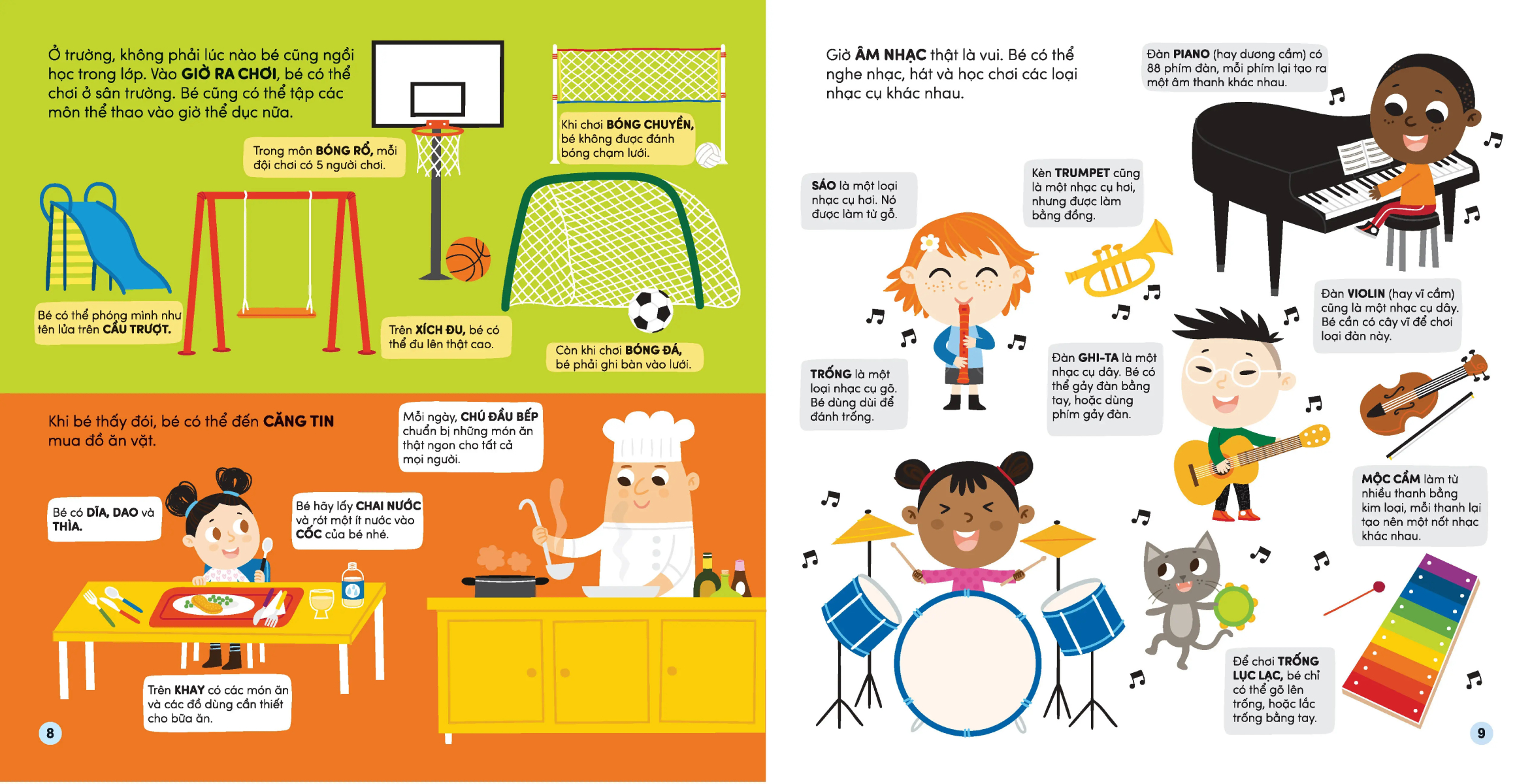 Mua tại TiktokBách Khoa Toàn Thư Cho Bé - Song Ngữ Anh Việt Trong thành phố, ở trang trại, ngoài biển xa, trên núi cao, trong rừng rậm, ở trường học hay ngay trong nhà: thế giới này có biết bao điều để bé khám phá và gọi tên. Trong cuốn Bách khoa toàn thư này, bé không chỉ được học rất nhiều từ mới trong tiếng Anh, mà còn được biết thêm nhiều khái niệm, kiến thức hay. Với những hình ảnh minh họa trực quan, đẹp mắt, nội dung ngắn gọn, dễ hiểu, đây thật sự không phải là một cuốn bách khoa toàn thư khô khan, nhàm chán dành cho các bé mới bắt đầu muốn tìm hiểu thế giới xung quanh. Bé hãy mở sách ra và tìm hiểu nào.