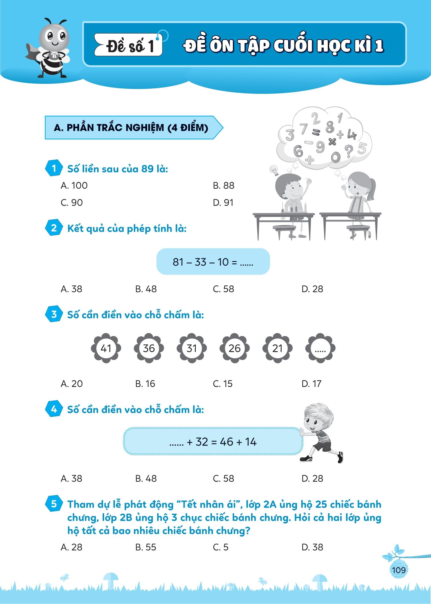 - Đáp án chi tiết, rõ ràng Phần đáp án chi tiết ở cuối sách giúp phụ huynh và các con có thể tự đối chiếu và đánh giá sau khi hoàn thành bài tập, từ đó có phương pháp ôn luyện phù hợp cho con. Mong rằng cuốn sách Bài tập bổ trợ Toán – lớp 2 (cơ bản và nâng cao) Tập 1 sẽ là người bạn đồng hành thân thiết, giúp các em tự tin nắm vững kiến thức của lớp 2, sẵn sàng bước tiếp lên lớp 3.