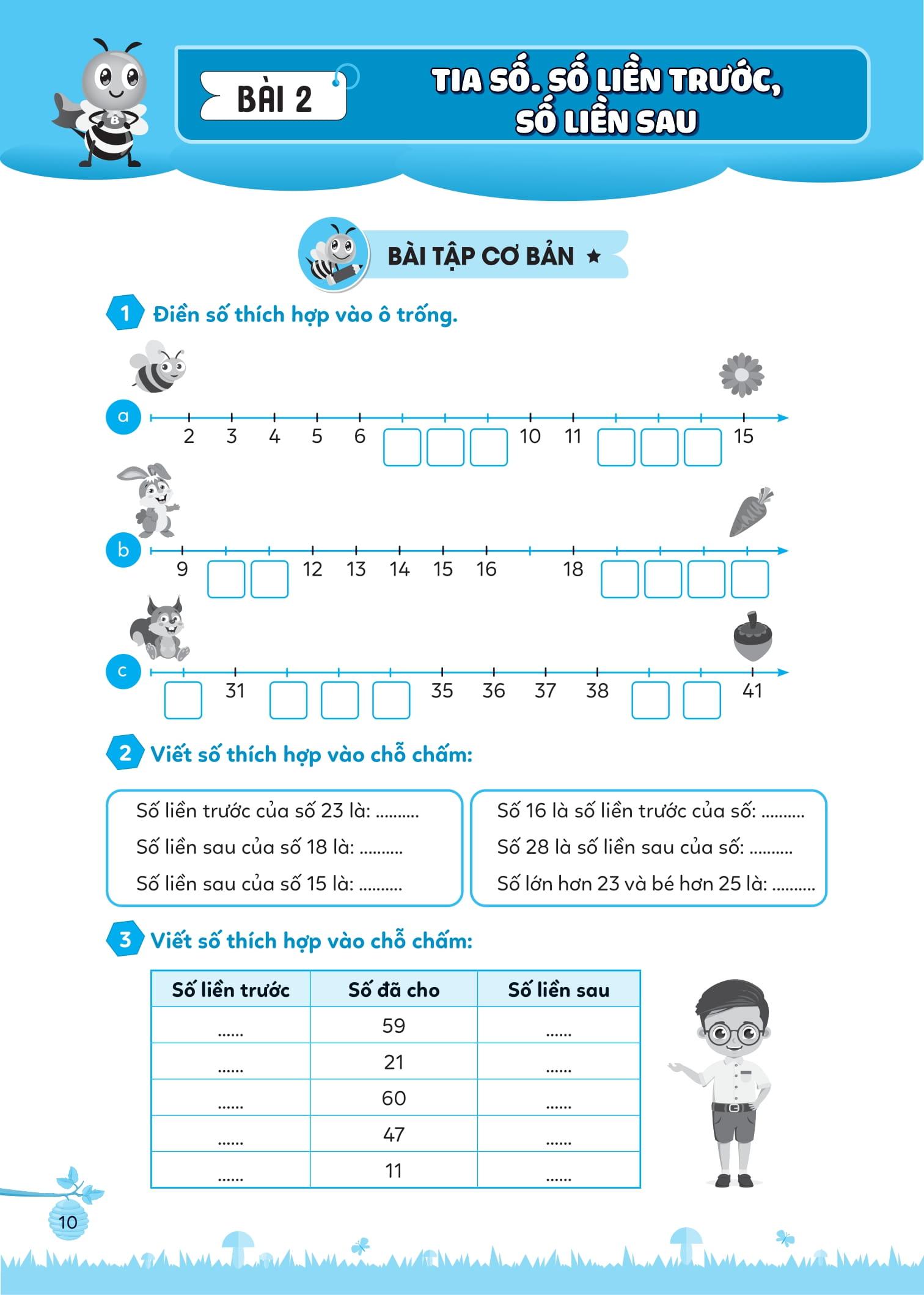 - Bài tập cơ bản Các bài tập trong phần này được thiết kế sinh động, đầy cảm hứng với rất nhiều các hoạt động nối, tô màu, điền số, giúp khơi gợi hứng thú học và làm bài tập của các em, đồng thời giúp các em củng cố và nắm chắc các kiến thức đã học.