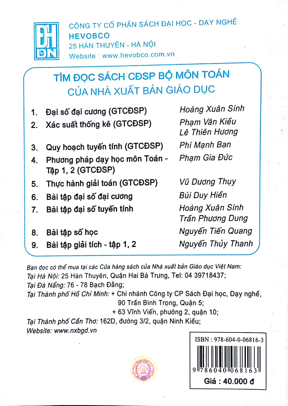 Những năm gần đây món Số học được giảng dạy cho sinh viên Cao đẳng sư phạm theo giáo trình ” Số học " của Nguyễn Tiến Tài – Nguyễn Hữu Hoan và cho sinh viên Đại học sư phạm theo giáo trình " Đại số và số học ” của Ngô Thúc Lanh ( tập I , tập II ) . Cuốn sách này được biên soạn dựa trên hai giáo trình đã nêu , có tham khảo thêm ” Giáo trình số học ” của Lại Đức Thịnh . Để thuận tiện cho việc học tập của sinh viên , chúng tôi viết phần tóm tắt lý thuyết và lấy các đề toán chủ yếu dựa trên cuốn " Số học ” của Nguyễn Tiến Tài – Nguyễn Hữu Hoan . Tuy nhiên chúng tôi có bỏ bớt một số bài toán đơn giản , đơn thuần áp dụng kiến thức cơ bản , hoặc có nội dung trùng lặp và thêm vào một loạt bài khó hơn mang tính lý thuyết hoặc đòi hỏi suy luận sáng tạo khi giải . Riêng với chương VI chúng tôi nếu cả hai cách xây dựng trường số thực theo hai giáo trình nói trên và chọn các bài tập tương ứng với cả hai cách trình bày đó . Về ký hiệu , để đơn giản trong cách trình bày chúng tôi chọn cách ký hiệu ( a , đụ , a , ) để chỉ ước chung lớn nhất , thay cho UCLN ( a !, âm a , ) và ký hiệu [ a , â , … , an ] để chỉ bội chung nhỏ nhất thay cho BCNN ( a !, Ô , … , 2 , a ) . ****