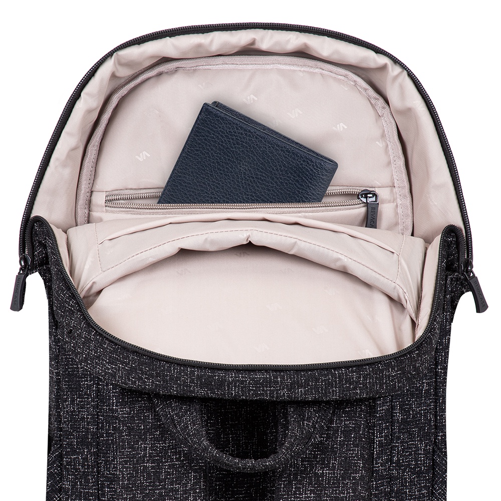 • Ba lô có một ngăn chính để tài liệu, phụ kiện và một túi khóa kéo bên trong để đựng các đồ dùng cá nhân nhỏ có giá trị như hộ chiếu hay ví.