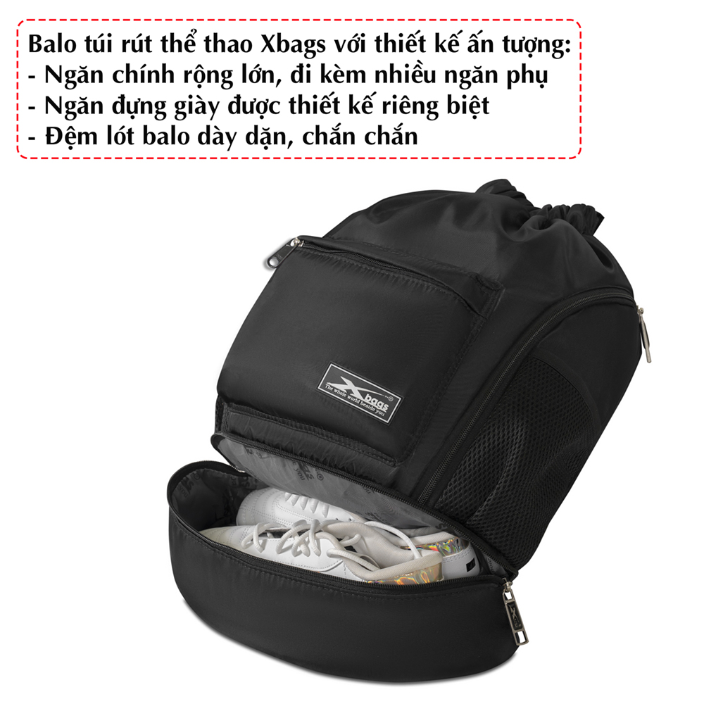 Balo dây rút thể thao chống nước Xbags thích hợp đi tập gym, đá bóng, bóng rổ đa năng